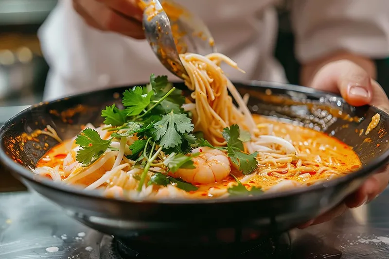茅ヶ崎の『OJC』では、マレーシアの代表料理ラクサをランチで楽しめます。ココナッツミルクベースのスープに、肉を使わずに豊富な野菜と海老の風味が効いた、複雑で奥深い味わいが魅力です。麺は、小麦麺や米粉麺などいろいろ揃えてるので、あなたのお好みでお選びいただけます。
