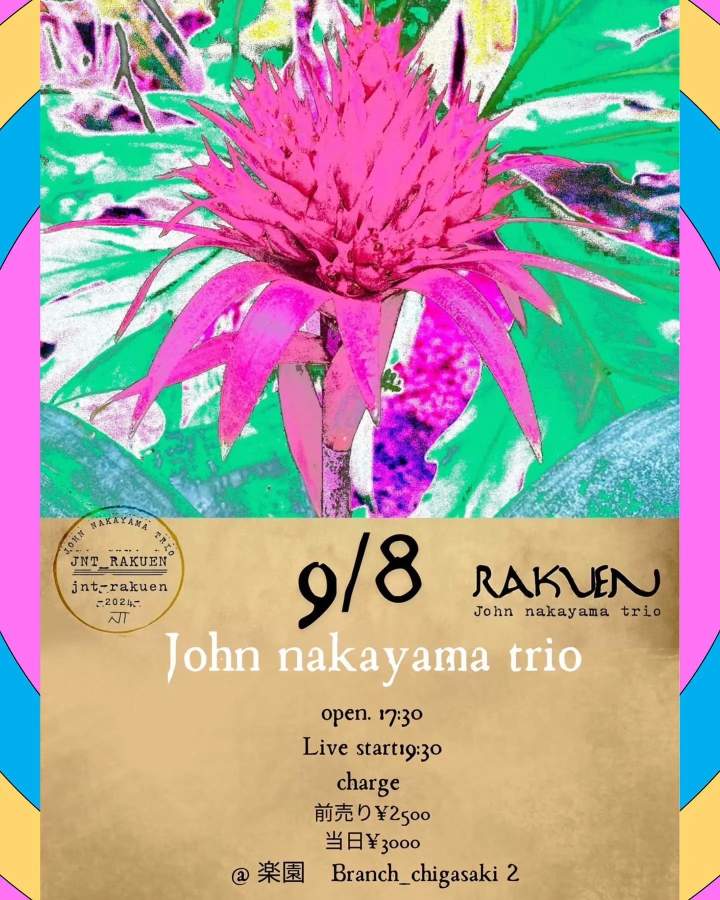 8月も後半に入りましたね🍉🌻 8月も後半に入りましたね🍉🌻9月の楽園LIVE2本も相当激アツでございます⤴︎⤴︎皆さん是非是非一緒に盛り上がりましょう❣️【🔥9月の楽園LIVEVol.1🔥】◎9月8日(日)『JohnNakayamaTorio』(アーティスト情報は下↓…